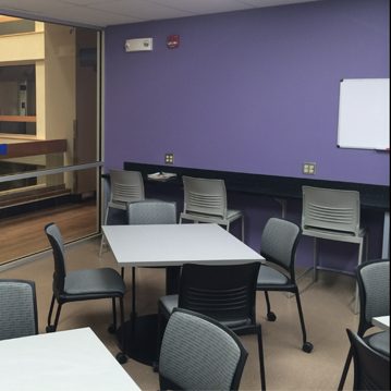 handicap sink and microwave, recycling / waste center, chairs + tables, stools + counter, vending machines, acoustic separation, increase in