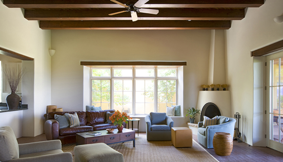 Designed as a vacation retreat for a couple from Houston, the house and gardens were also planned to accommodate visiting family members and weekend guests. The house is sited on a 23 acre lot with magnificent views to the west toward the Jemez Mountains and eastern views to the Sangre de Cristos.