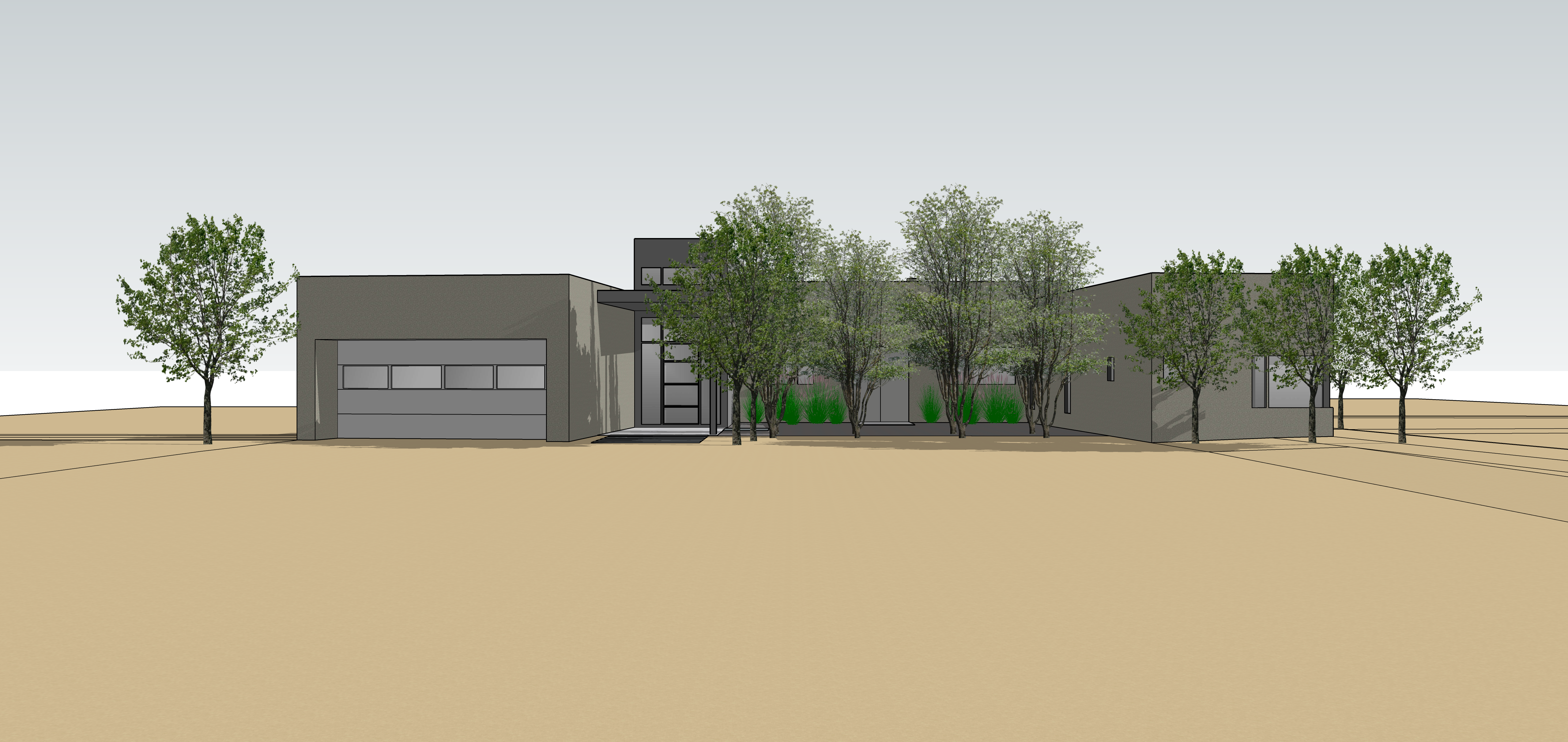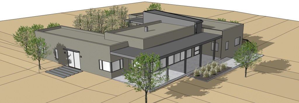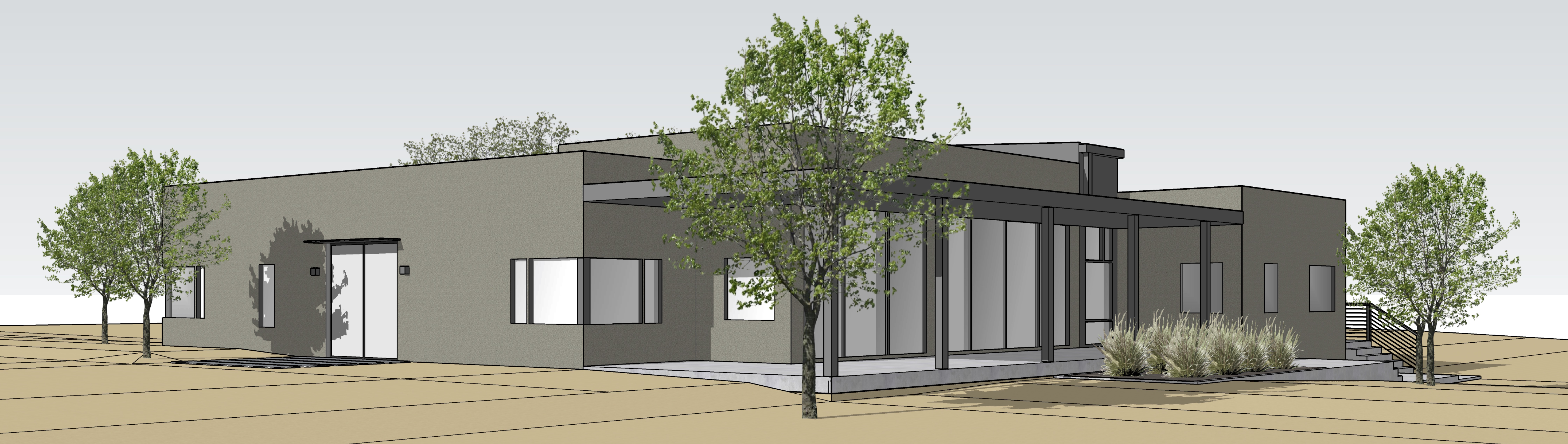 This 2,521 SF residence is located atop of a mesa overlooking the railroad tracks in Glorieta, New Mexico. This minimalistic yet modern design provides an un-cluttered and open space in which allows the home owners’ art to shine. The outdoor porch at the back of the house expresses the view of the valley below making it the perfect place to entertain guest year round. The floor plan of this house reaches out inviting you in to the entry foyer highlighting the large 16ft ceiling height welcoming you into the home. At the center of the house is a dual sided fireplace to warm you up
